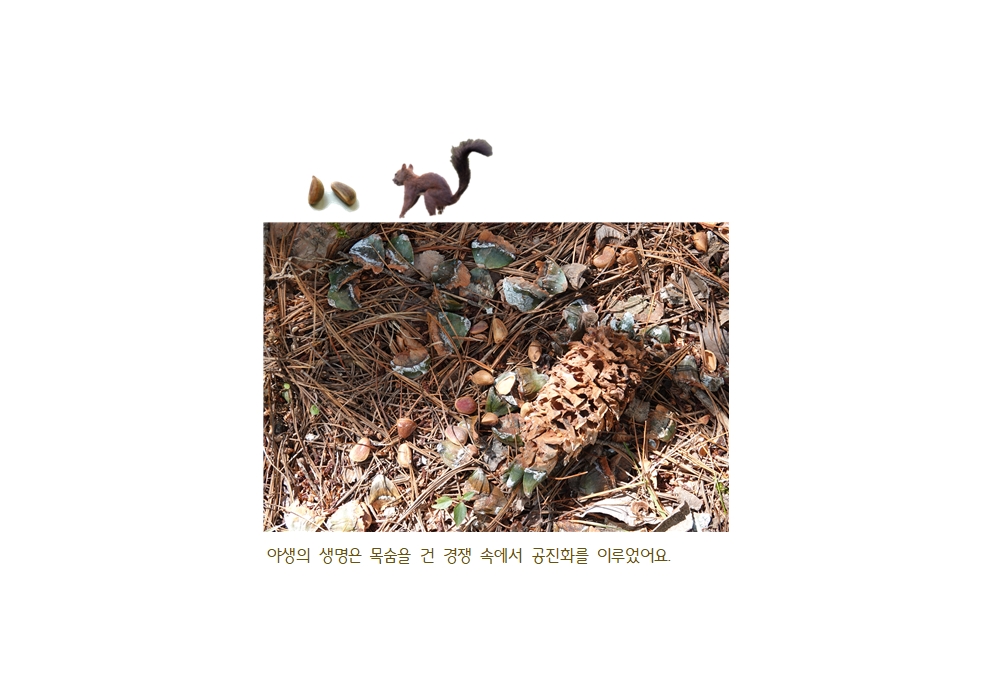 야생의 생명은 목숨을 건 창과 방패의 경쟁 속에서도 공진화를 이루었어요. 온갖 동물에게 퍼주면서 공진화를 이끌어 가는 식물은 어떤 존재인가요? 소나무 집안에서도 유별난 잣나무는 또 얼마나 독창적으로 퍼주고 있는가요?