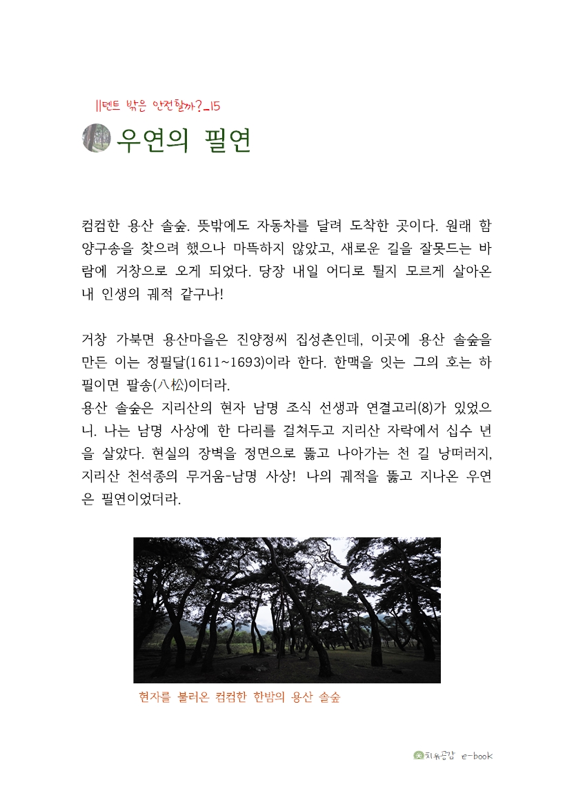 내가 사모하는 지리산과 남명(南冥), 그리고 컴컴한 용산 솔숲의 여덟 소나무, 이 어찌 우연의 필연이 아니겠는가!