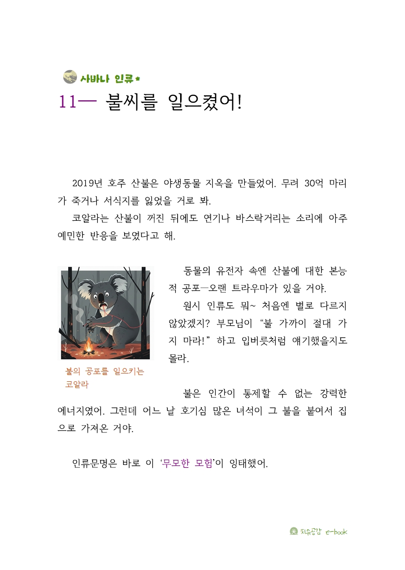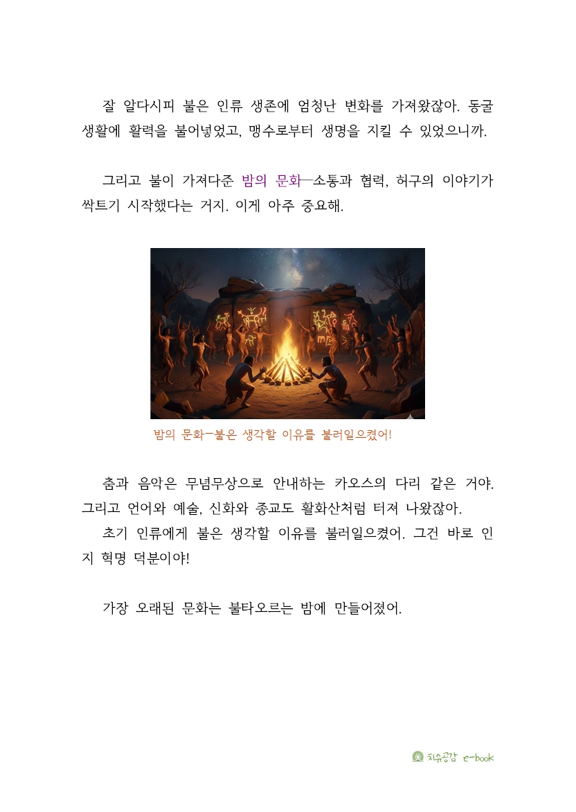 초기 인류에게 불은 생각할 이유를 불러일으켰어. 그건 바로 인지 혁명 덕분이야!