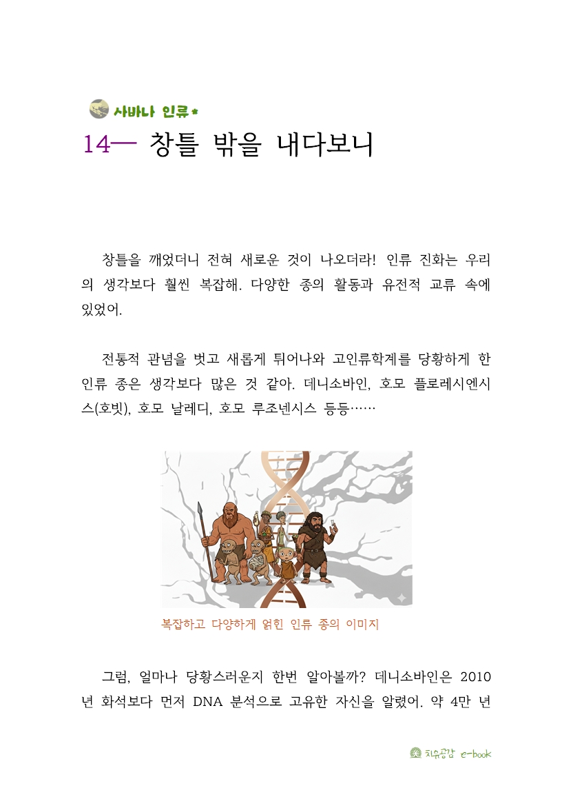 그러니 유리 창틀 너머로 마주하는 고인류는 낯선 이방인이 아니야. 우리 몸속에 흐르고 있는 또 다른 나인 거지.
