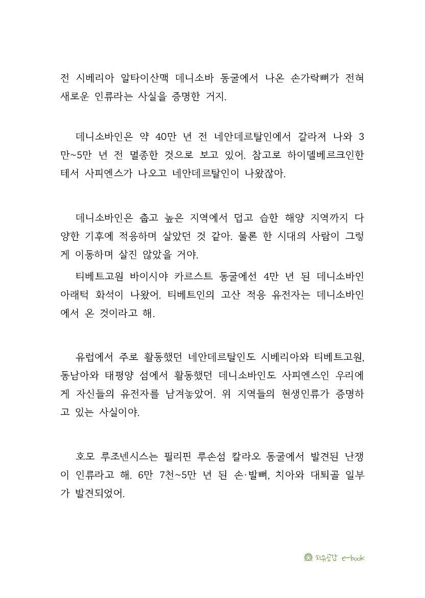 유럽에서 주로 활동했던 네안데르탈인도 시베리아와 티베트고원, 동남아와 태평양 섬에서 활동했던 데니소바인도 사피엔스인 우리에게 자신들의 유전자를 남겨놓았어.